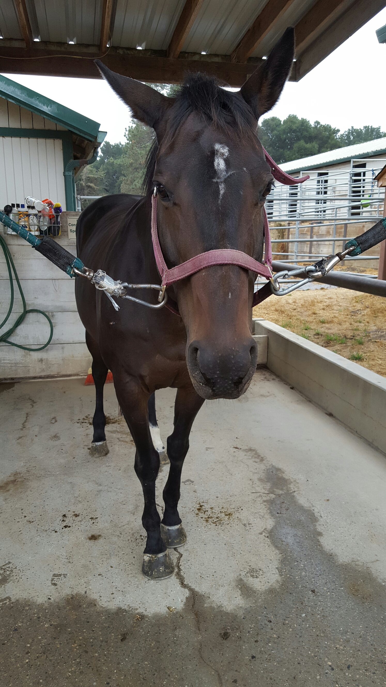I got in my car and showed up to the barn and saw I was the only one there. No one would know if I decided to turn around and go home. I wanted to go home. Instead I worked my way though the drizzly rain and got out my first horse of the day. Ella.