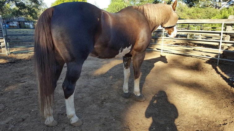 So after the phone call I went over to Gucci and talked with the friend who is keeping him. We discussed how maybe if he doesn’t start to eat like normal in the next day or two that I should call up my vet and see what he thinks I should do. Its hard because you can’t force feed a horse. Nothing has changed feed wise, we took everything over. I’ve been cutting back more and more on his bucket because he’s just not eating it and I’m throwing two meals out a day. It sucks. I’ve been pasting him with his medicine and a mix of molasses to make sure that he gets the important stuff. Usually he’d be eating by now.
