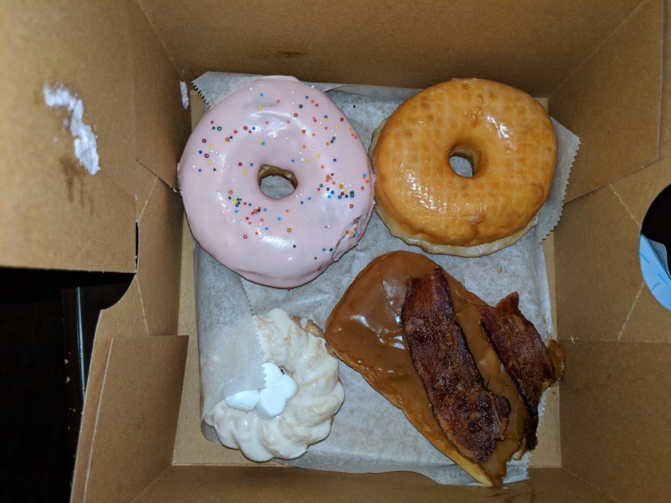 We left with our little pink box and were on our way to the hotel. We started the day with M*A*S*H (one of my favorite shows) and donuts. I had the glazed and Fiks had the maple bacon. They were both good.