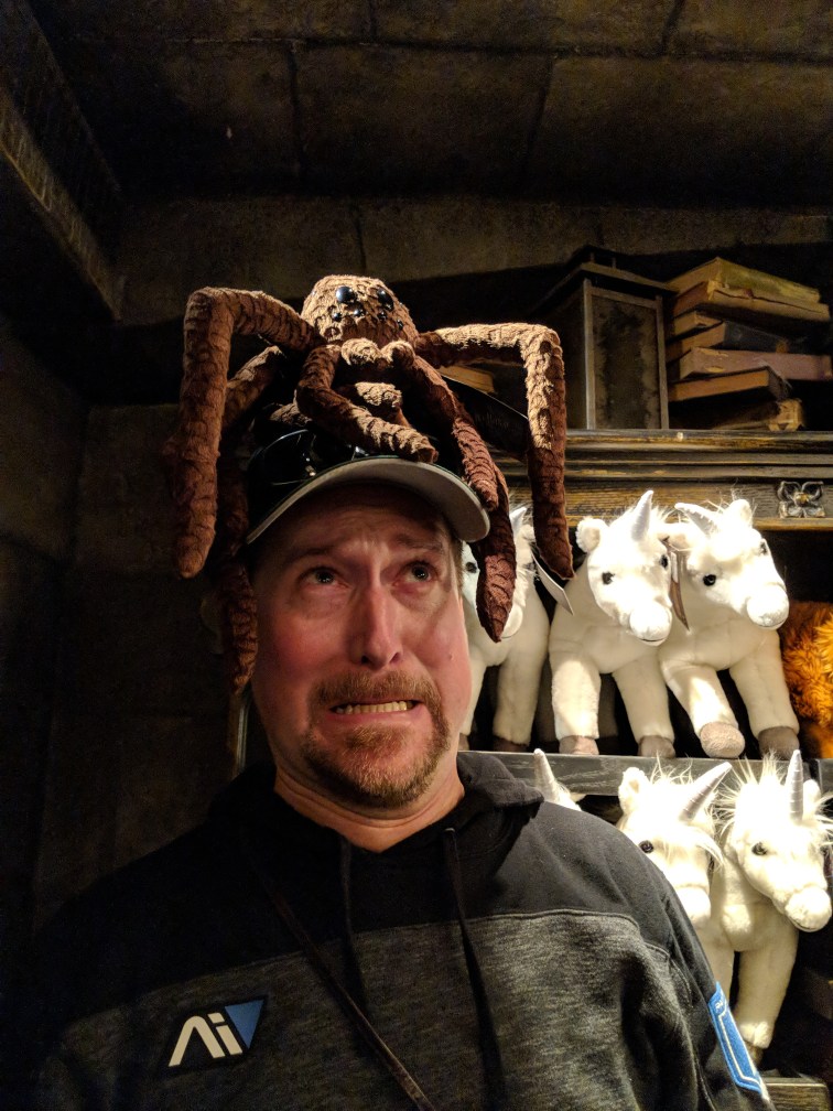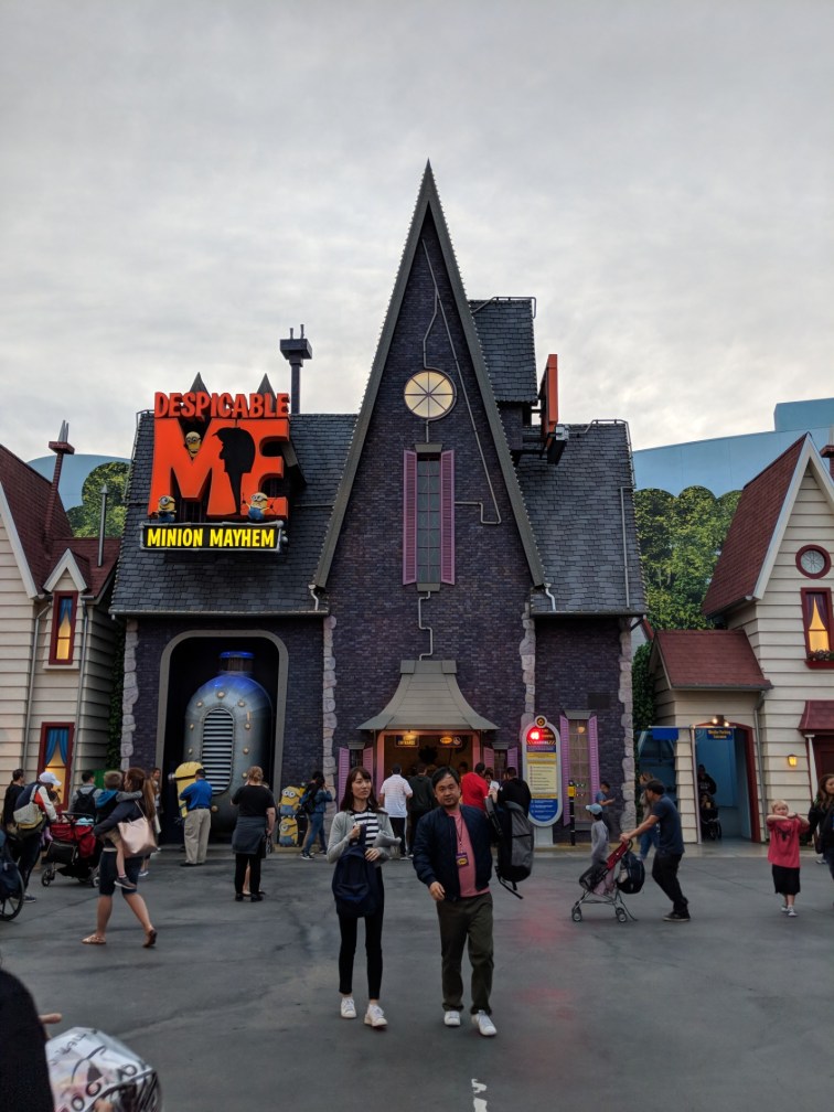 He can’t be left alone unsupervised apparently. We then went to the Despicable Me ride, and I think it used to be the E.T. Ride. It was fun. You were ‘shrunk’ to be a minion and then the 3 daughters are on a mission to train you to be minions, and it goes horribly wrong. Of course.