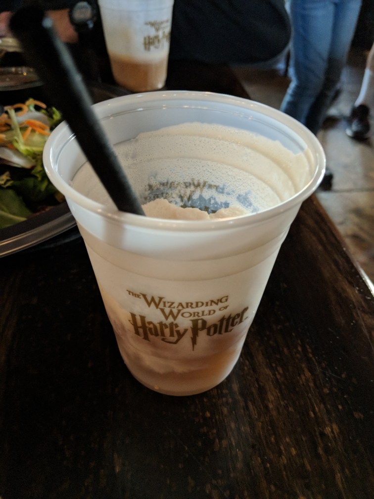 We went and ate at the Three Broomsticks. Fiks had fish n chips. I had Shepard’s pie. I think his was better than mine. We both got butterbeer to drink, and man, it was good.