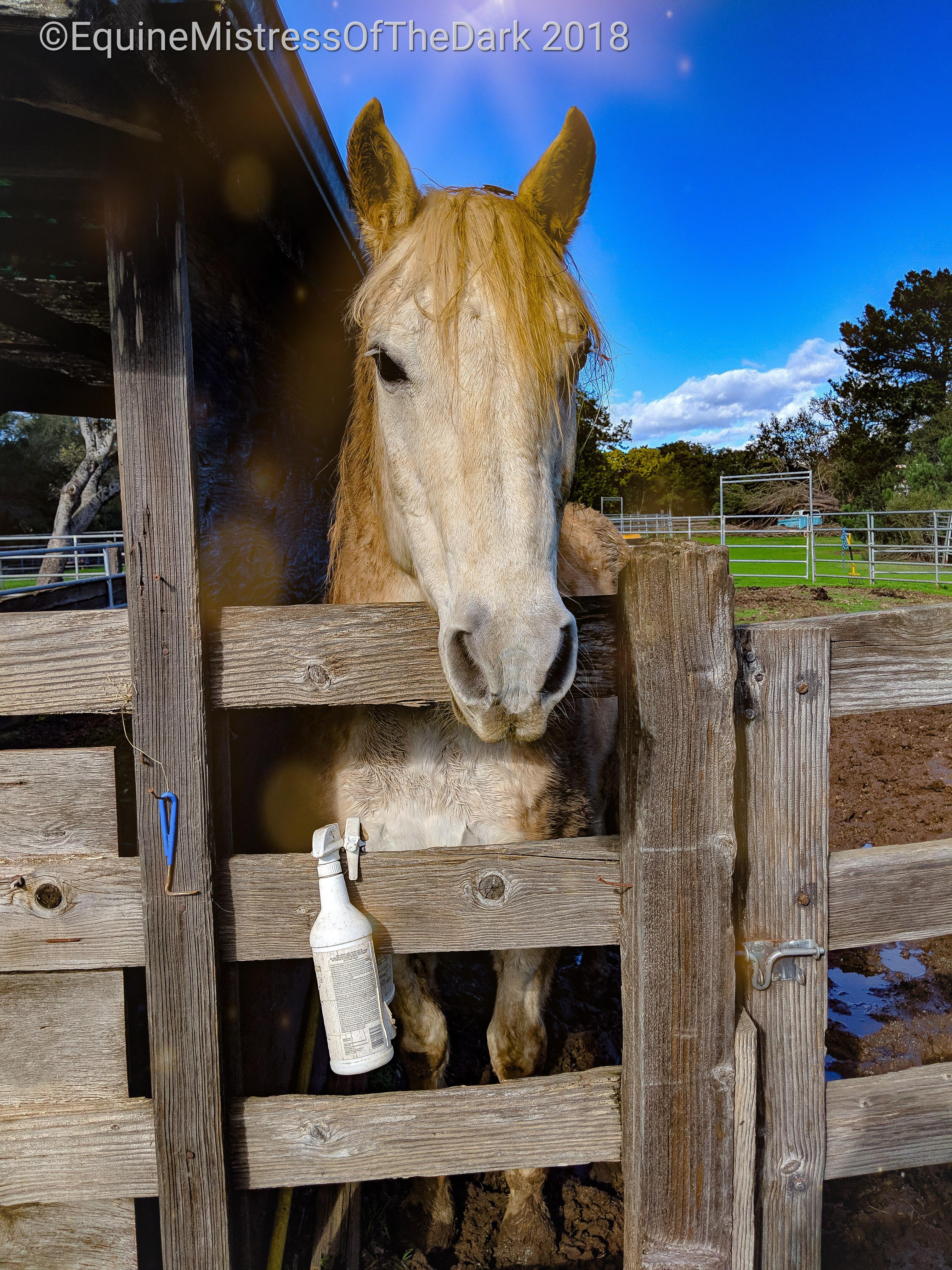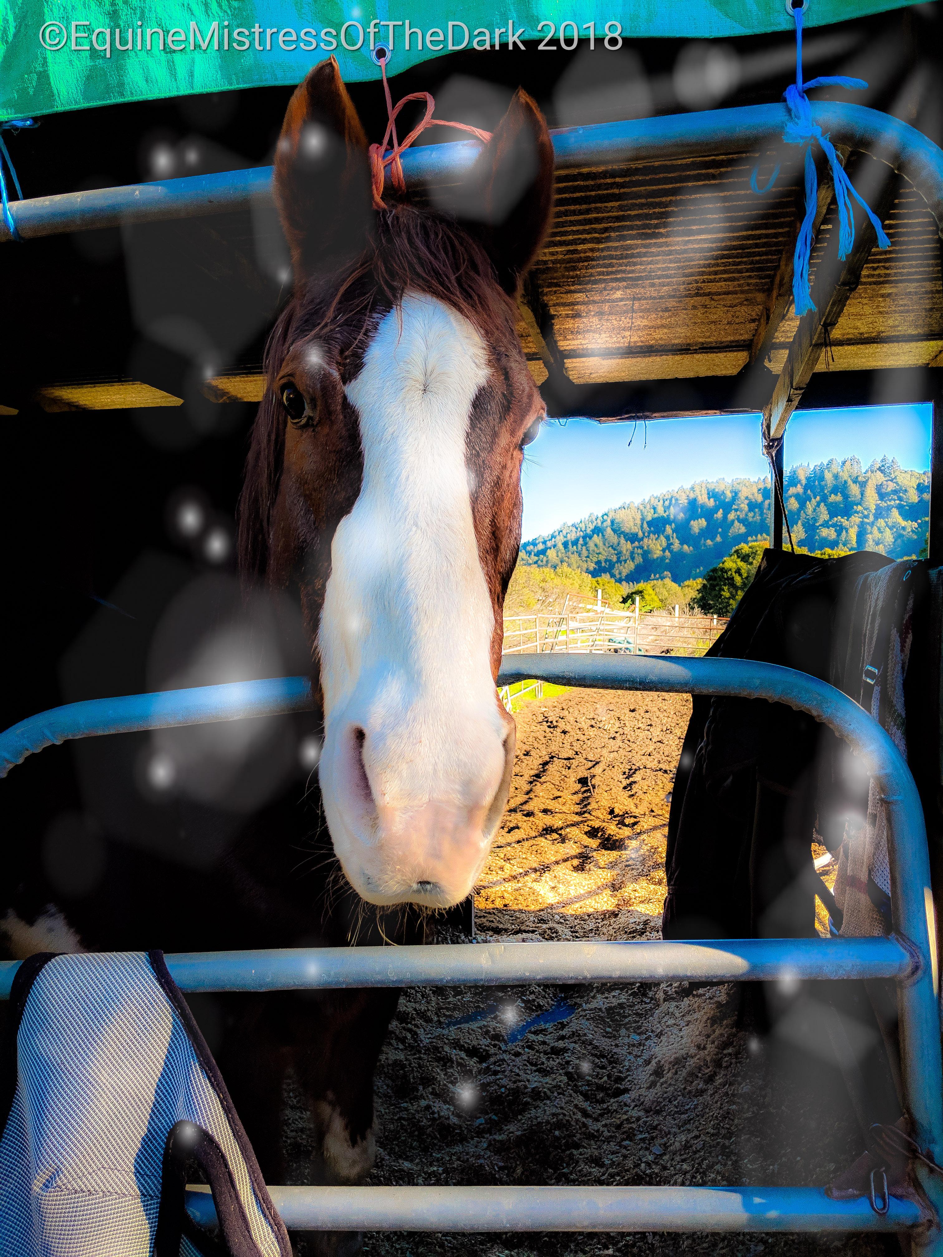 We all went inside and Lumier took a nap while the rest of us did stuff. I helped mom clean up a bit, and we watched some Dr. Pol while we chatted and had some lunch. I left and went to go feed Smoke because his parents are away on vacation in Hawaii. Smoke was happy to see me, nickering and tossing his head around.
