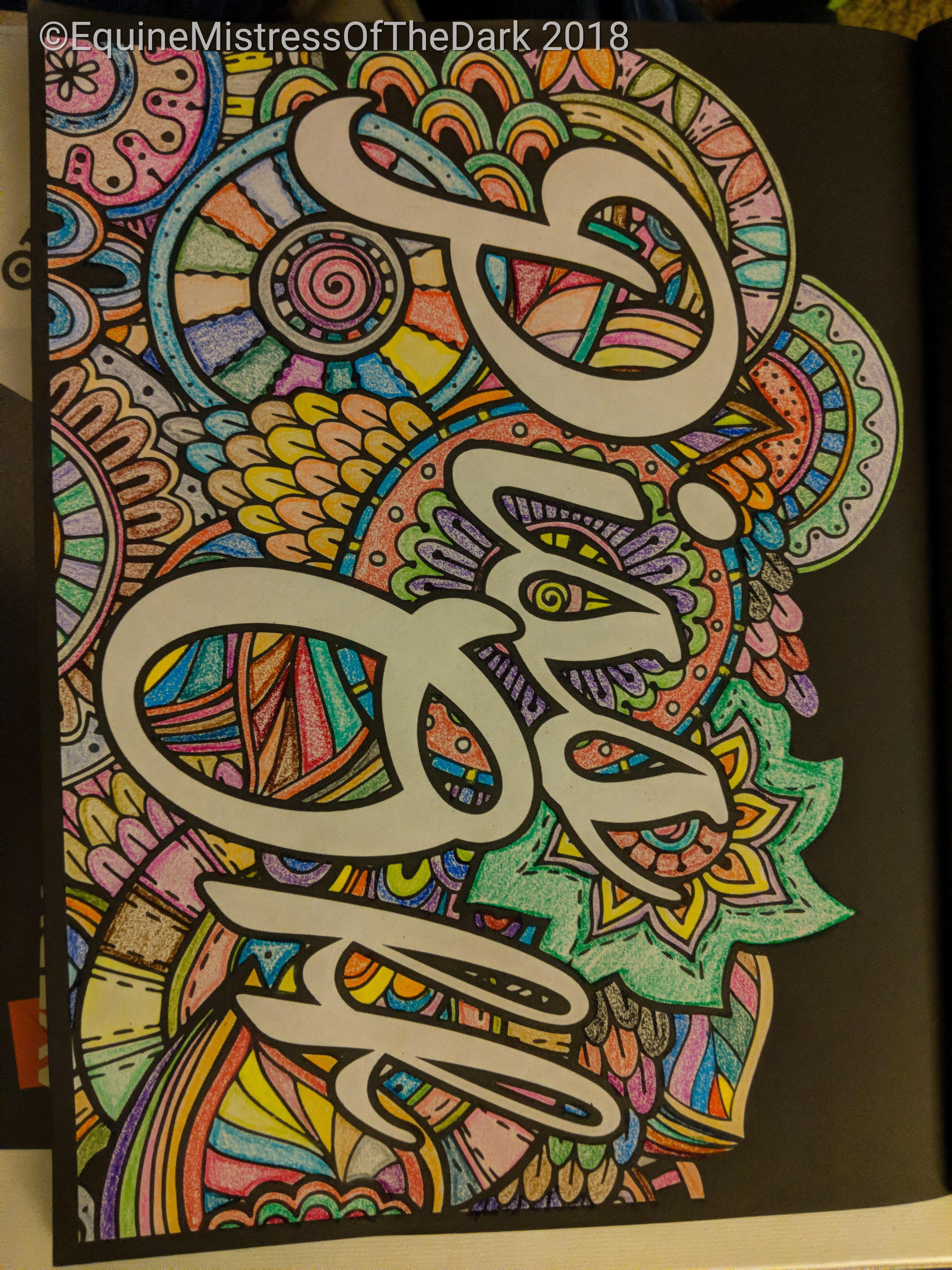 I spent the night coloring. I haven’t done it a lot lately and I forgot how relaxing it is. I colored in my swear book, so I won’t be able to show all of the pictures.