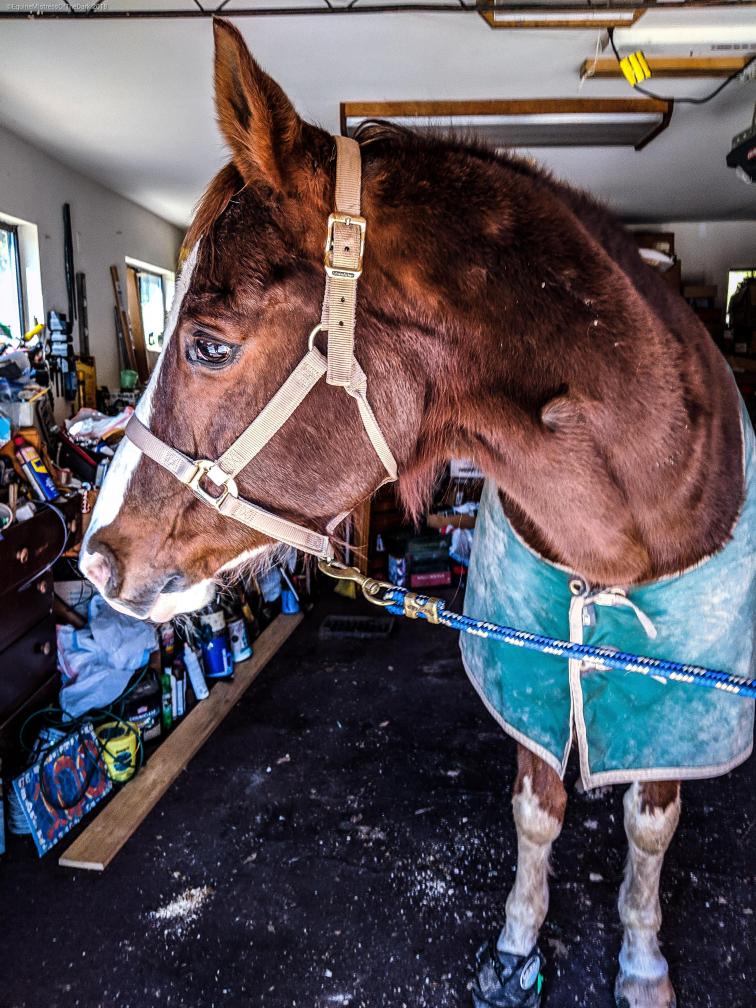 We took a little break and ate something and watched the news before grabbing Gucci again in order to change his wrap. I don’t know what I did differently from the vet, but his hoof wasn’t dry when I unwrapped it. So I took away the gauze pad and just used some gauze and wrapped his hoof again, hopefully it’ll work this time.