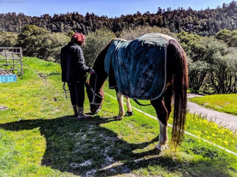 We changed Gucci’s wrap next, and he seemed to be moving faster, but his hoof was super hot, so hopefully his abscess will pop soon. But he did really good for me changing his wrap, on Monday it was kind of a struggle. Mom grazed him while I made sure he had enough food, I decided to give him a little more alfalfa.