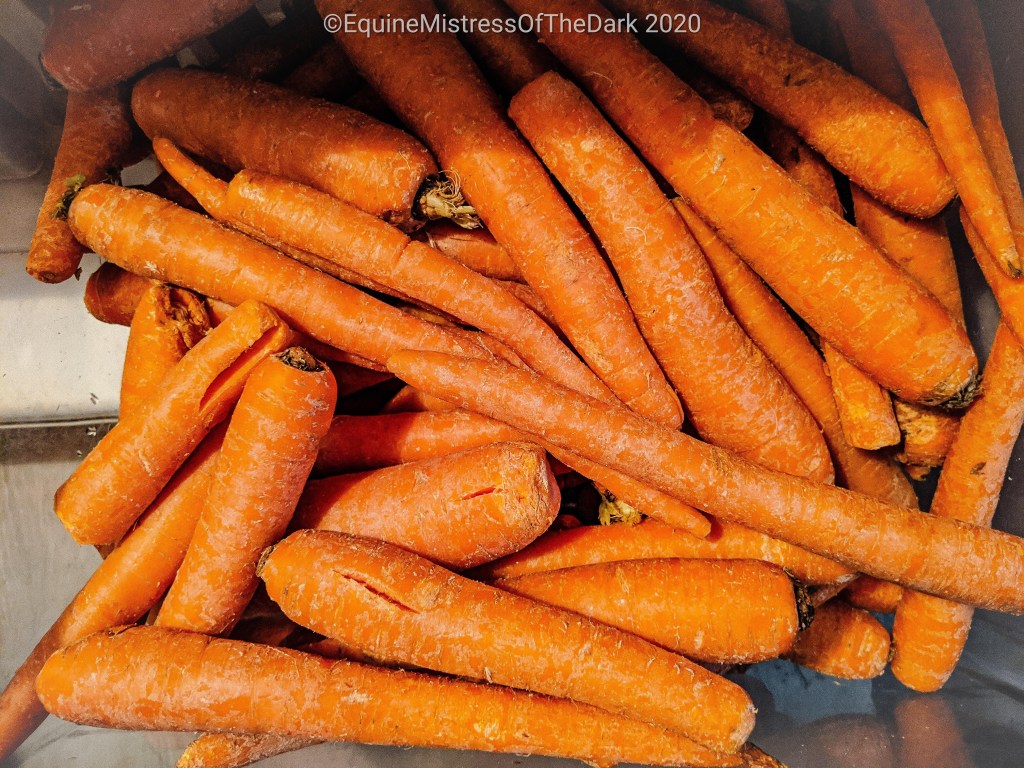 I managed to get almost everything on the list, they were out of my cereal and I forgot to grab some coca cola. Afterwards I went over to my parents house to say hi to Gucci. On the way up I picked up the garbage cans for Poppa. I went over to Gucci and discovered that there were no carrots waiting for me, so I told him I’d be back with carrots. Then Poppa and Lumi came out bearing a bag of carrots. I dug out the good ones an left the yucky ones behind. I got about a good dozen out, and left like 2 dozen behind. I gave him a flake of hay, because he was low on hay I felt like.