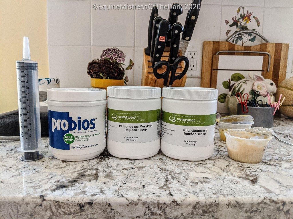 Mom kept jumping back and forth between Dr Oakley, and the news. I dozed on the sofa for a little while. Then Lumi came and poked his nose in my face and woke me up. Mom kept telling him to leave me alone, but he wouldn’t. I gave him some pets and then I got up and made Gucci’s medicine and then Poppa and I went and pasted him. Gucci was really good for us again, after he turned around towards the hay bag.