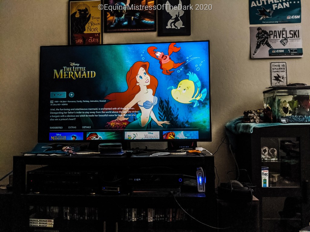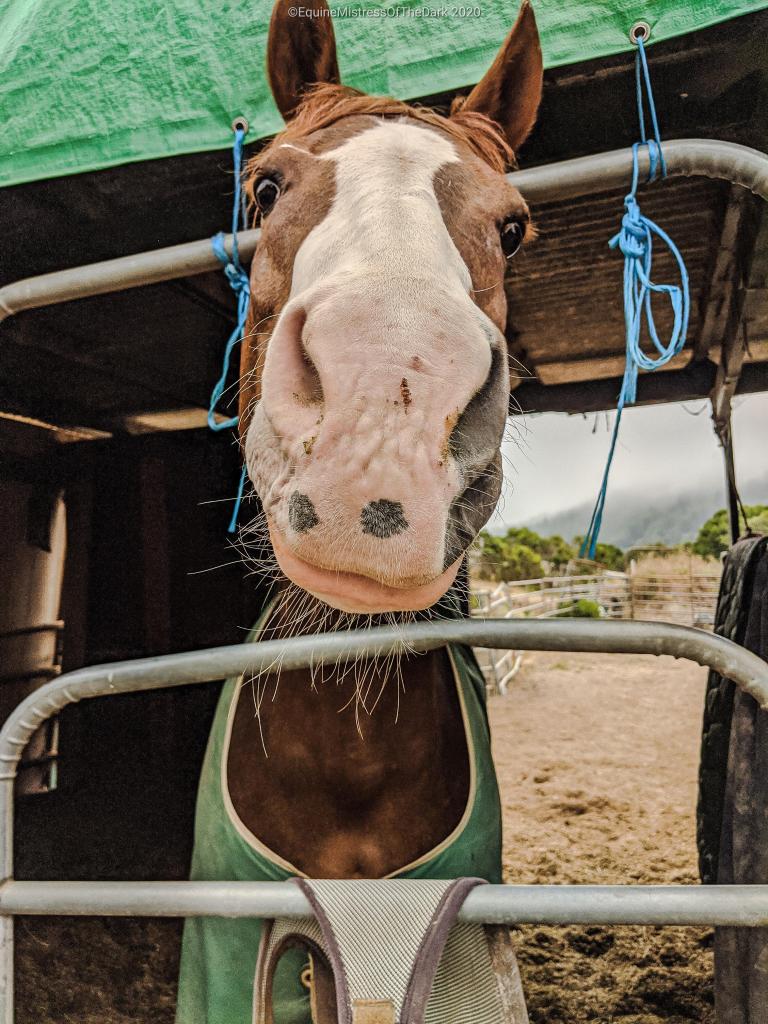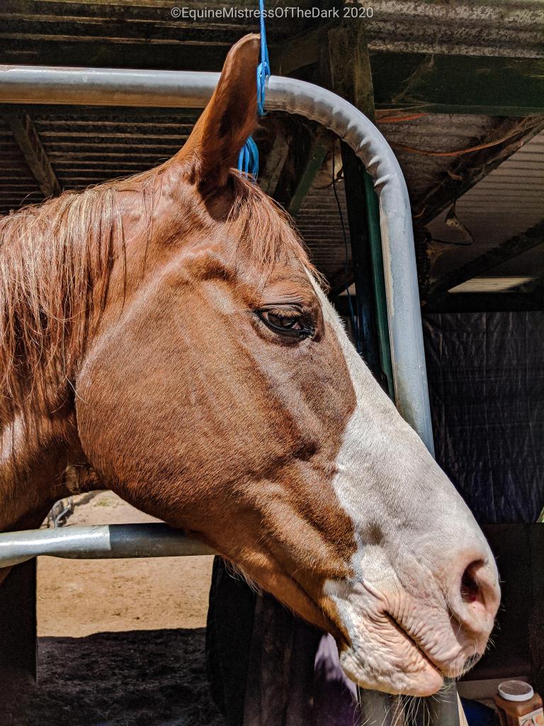After he was done getting shoes I swept up the trimming and the hunks of hoof so Lumi didn’t get them. Then Poppa went outside and helped me paste Gucci, who was good for it. He was just over people at that point in his day. So I came home because I didn’t take my uniform over with me and then I flopped on the sofa for a while and watched some Disney+. Then I had half a sandwich before getting dressed for work and heading down to work.