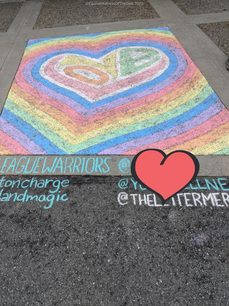 I got to work okay. I sat and read my book for a little bit. It was Pride week at the bank and they had this really cool chalk(?) artwork done at the front of the building.