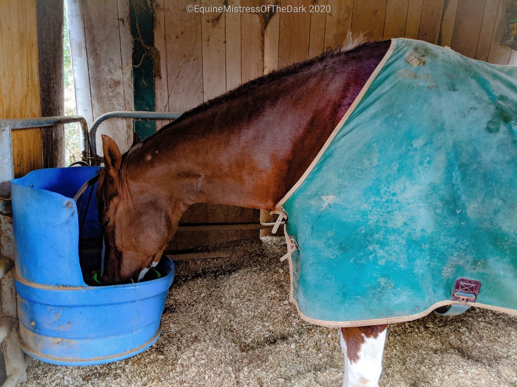 I went around to the other side of the truck to grab him a couple of carrots to get him back into his stall. He took one and walked with me. Took a bite of the second and kept walking. Stopped about 5 feet away from the gate and was chewing on his carrot for a good 5 minutes. Finally stopped chewing and followed his third one into his stall.