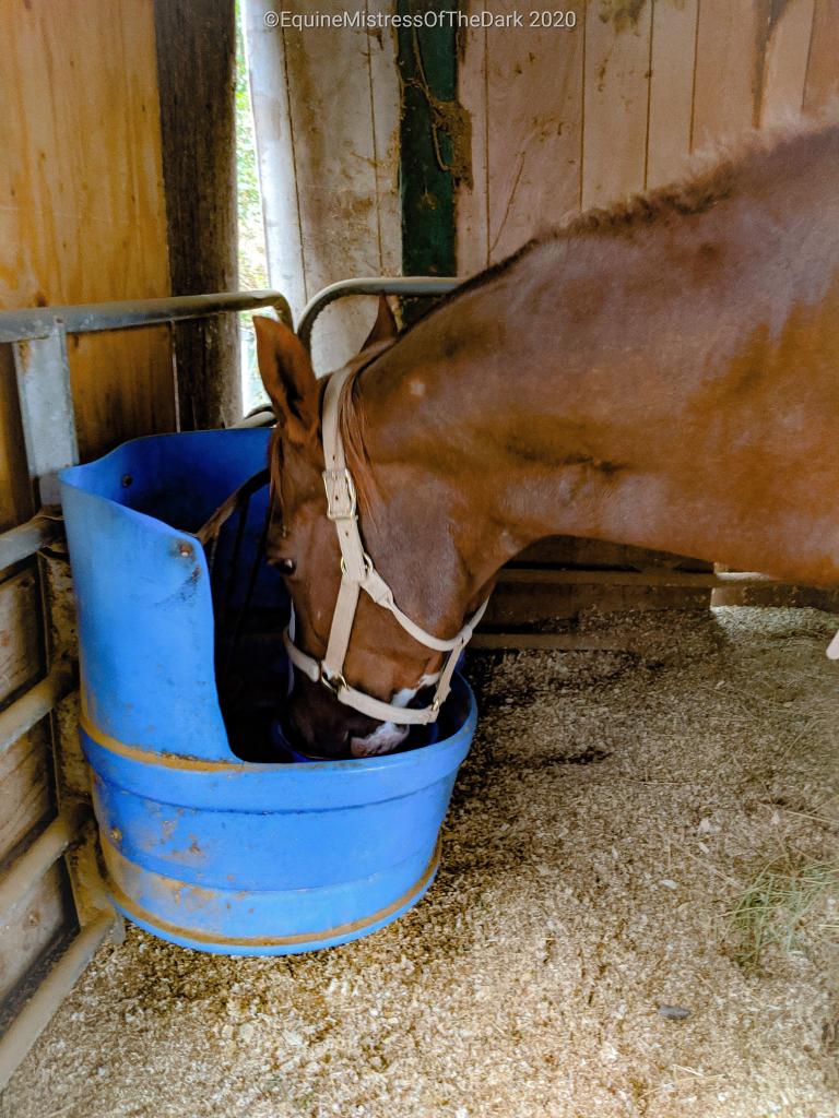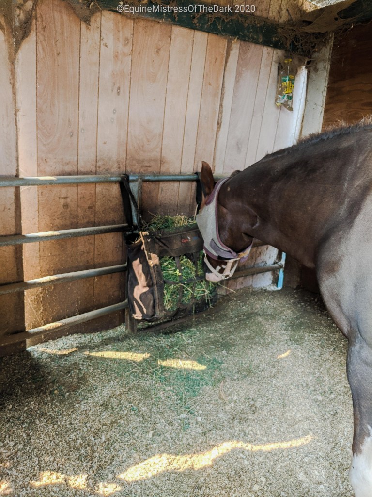 I woke up and then came downstairs. Mom and my Sister were up, so I asked Mom if Gucci had been fed and she said she didn’t know. My Sister said he didn’t whinny when she went outside. So I waited until she left and went out and checked on him and he hadn’t had any breakfast yet. So I gave him his bucket and his hay.