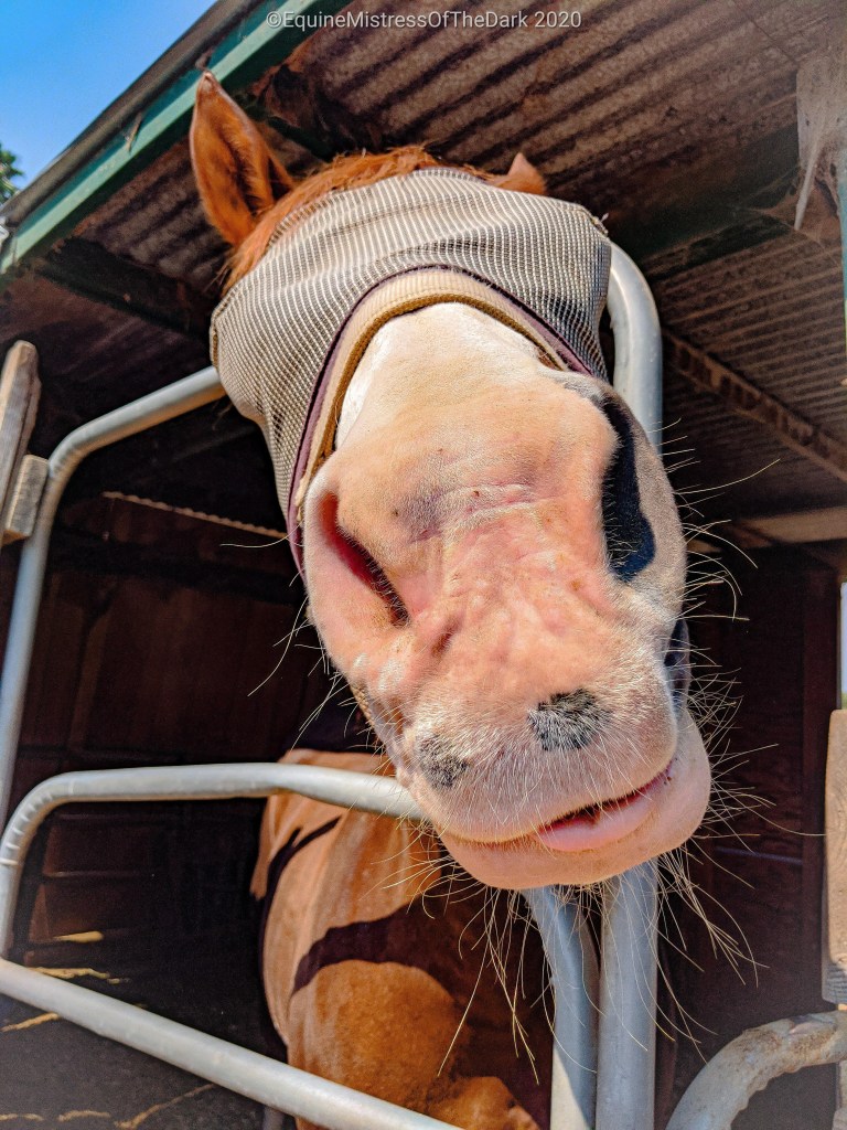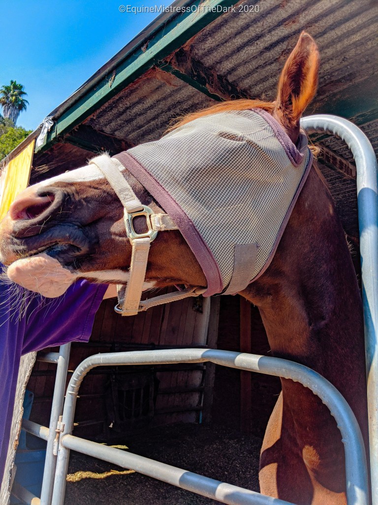 Poppa was out mucking his stall and had Lumi tied to the fence so he couldn’t run away. I went over and got 2 carrots of Poppa and then I went and said hello to my boy, who was waiting for me at the gate.