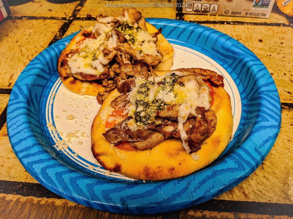 I got home and Fiks was on the computer, he showed me the new trailer for the new Dune movie (very cool looking) and then I went and got cleaned up. Once I was cleaned up I asked what we were doing for dinner, and we decided to do one of our meals. Mini pork pesto pizzas. We had a hick up along the way, but we got it all made. And it turned out really well.