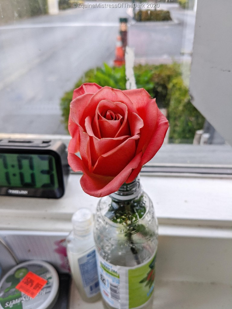 I got there early today, even by my standards. But that’s okay. I got myself settled in with my podcasts and my book. I had a hard time focusing on my book. I went to the Disney dress shop and ordered a new dress for me, I’m really excited. I never showed you the pretty rose my coworker picked/received during the week.