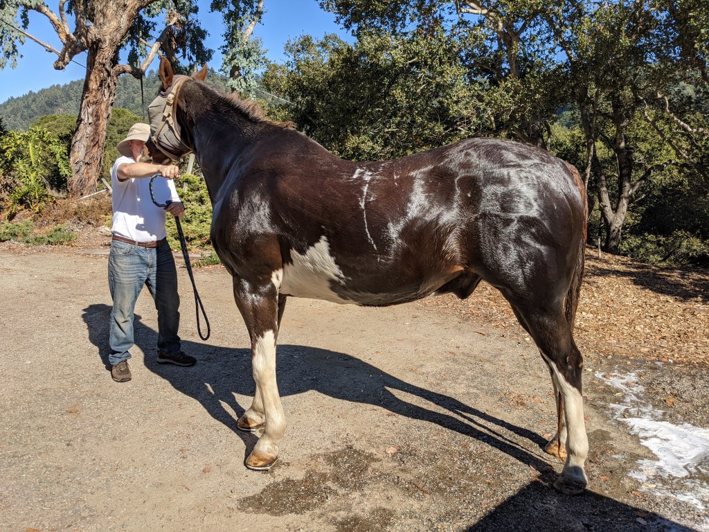 Anyway, the Farrier texted me at 130 that he was on his way, so I went and got Gucci out and we started walking our laps that I promised him this morning. He was moving out really nice today, so that was great to see. And he did really good for the Farrier today. Best hind leg flexion he’s had in a year, so that was great to hear. He still had a little hole in his frog, so that’s going to need some Koppertox applications for a while.