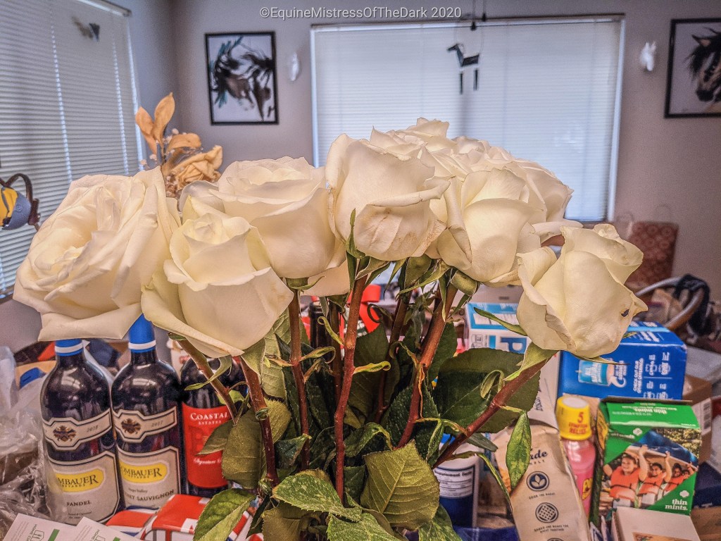 I got to the grocery store okay. It was kind of busy, but I was closer to 8 then I was to 7 when I got there. I listened to music and walked around gathering what we needed. Then I went over to my parents house and said hi to a very happy Gucci. He had molasses all over his nose from his grain. I gave him a couple of carrots and then I went inside.