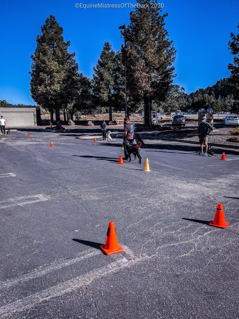 Poppa showed up a couple of minutes later and we went and got Lumi out of the cage. He started bouncing up on Poppa so we threw him back in the kennel and waited for him to calm down. He sat, so we let him out and we joined the rest of the group for the lesson. The trainer took a Lumi a couple of times to show us what he wanted done and to demo to the group. Who’d a thunk; Lumi, a demo dog!