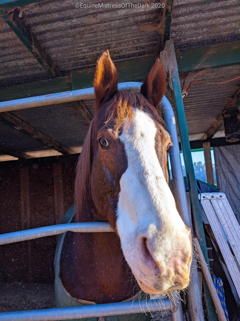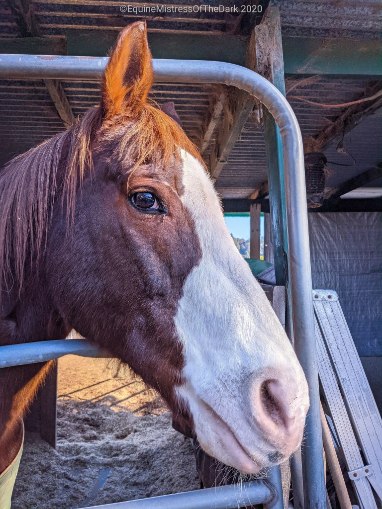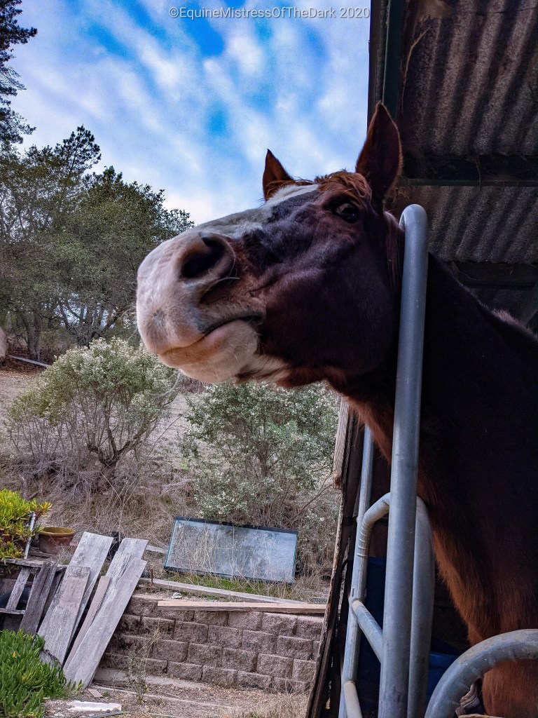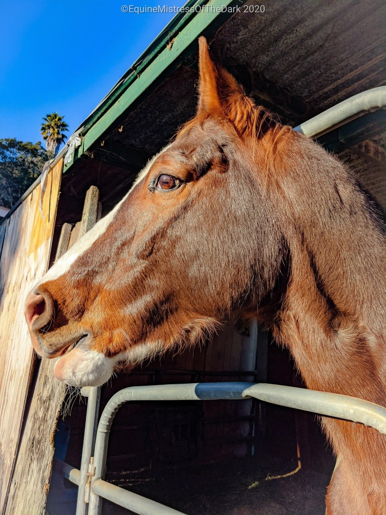 After work was done I went and said hi to Gucci, who was happy to see me and get his treats. The neighbors were riding their motorcycles in the field next door and on the fire road above, so they had his attention for a few moments.