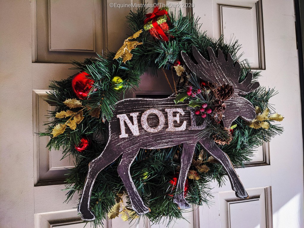 After sandwiches I came home and brought up the Christmas boxes and the Christmas tree. I didn’t necessarily need it up today, just in the house. I hung up the new light that I got and looked for the box of the box of lights, but I couldn’t find it. So I called my parents and asked if they had any lights that we could have, and they said yes. But I hung up our wreath and our moose!