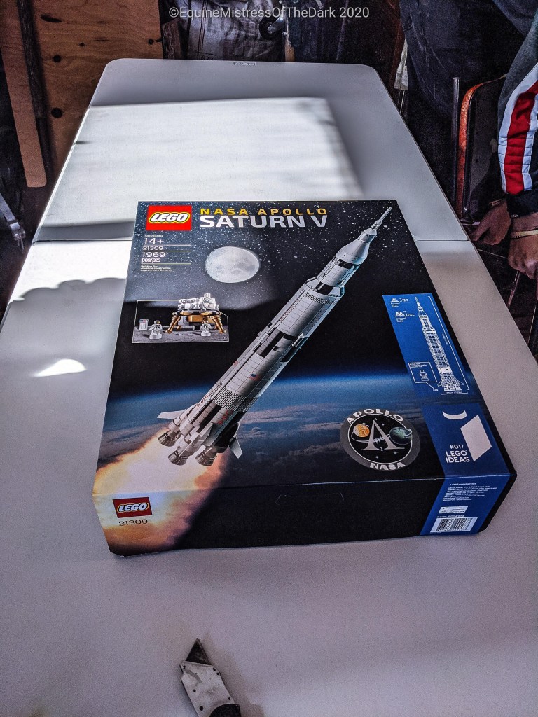 We went in and said hi to Mom, Poppa, and Lumi and then Poppa and Fiks were going to work on the Lego Saturn 5 rocket when one of Mom’s friends drove up. So while they were talking we went and turned Gucci out for a graze. As you can see he was pretty happy with the grass. After his time was up we poured some medicine on his hoof and then put him away. Mom’s friend wanted to say hi to him and give him some carrots, so I went and got him out again and brought him over to the door so he could get spoiled.