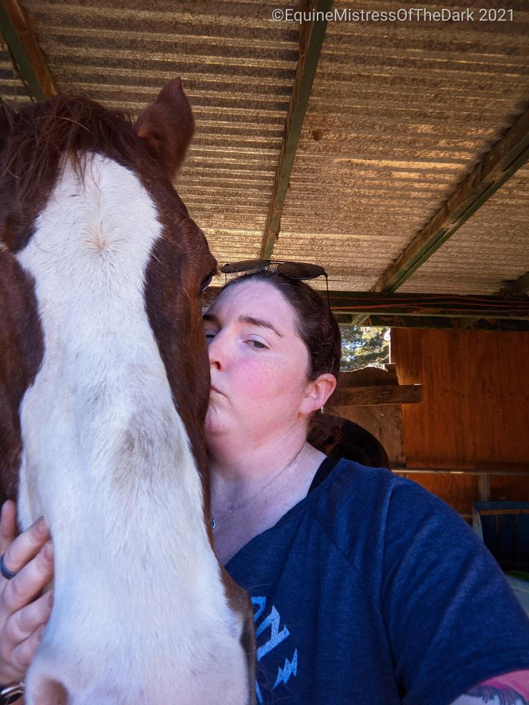 Anyway, I took a nap and woke up to a text from the farrier saying his assistant was coming to pull Gucci’s shoe. So I got up and went back over to my parents house and got Gucci out and we grazed for a while and then I brushed him while waiting for the assistant to show up.