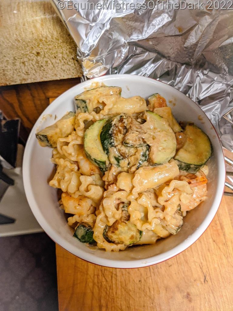 After a while I started to get hungry, so I messaged Fiks asking what he’d prefer, he said he was good with either one. So I made the shrimp pasta dish, the sauce didn’t turn out quite the same color as it did on the instructions, but it was still super yummy.