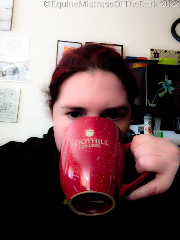 After a while I went and got dressed, gathered my school things and to the truck I went. I got going, the drive wasn’t as bad as it was last week, but it still took about 45 minutes. But I got to school with time to spare. I went and got a hot chocolate and ran into my friend C, and so we chatted for a bit and then we sat down and I worked on the homework that I forgot about. When it was close to class time we got up from the table and headed to the classroom.
