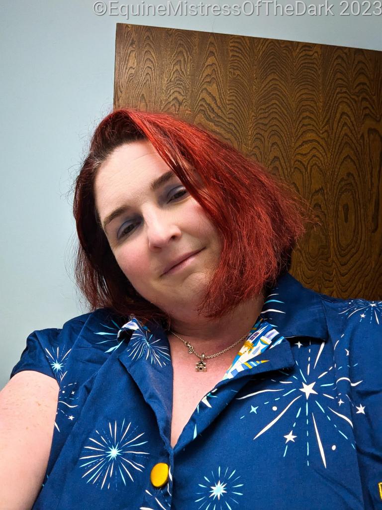 After watching some Big Bang and looking into doing Oats Overnight, I went to straighten my hair. I forgot to take a before photo, but here is what I look like now with straight hair. Fiks picked his WALL-E and EVE shirt, so I decided on my Pixar dress. Fiks is hoping into the shower and I’m going to do my makeup.
