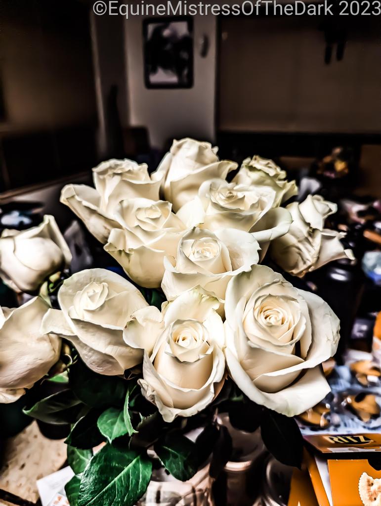 I hung out on the sofa and waited for my Doctors appointment to start. Fiks came out of the bedroom and snuggled with me for a few minutes while I waited. When she showed up we started the appointment. It went pretty well, we’re not changing anything right now, and we’re going to check in in a few months. Afterwards I went and got out of PJ’s and into jeans and a t-shirt. While I was getting dressed Fiks got a few phone calls from work, thankfully they were easy fixes and didn’t ruin the mood. I grabbed the load of dirty laundry and threw that into a basket and went downstairs and moved the laundry. Fiks got his socks and shoes on while I did this and met me down by the cars. We piled into his little Mazda and went down the mountain to the grocery store. The store wasn’t bad, we got some white roses and went around the store and got everything that we needed.