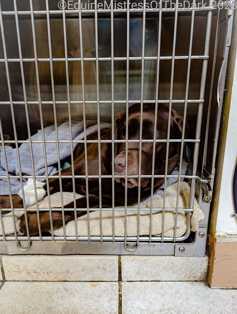 This is one of the times she was sleeping. A left around 315 and then it was just L, G, E and myself. E and I brought a dog who couldn’t walk in from a car, we carried her in on the seat cover the owner had her on. We took her to ultrasound land and the Doctor looked for free floating fluids in her abdomen, thankfully she didn’t have any. L and I moved her back into the room with her owner and then she got up and tried to go through the open door, the owner was in shock that she was standing and I ran and closed the door and then told the doctor she was up.