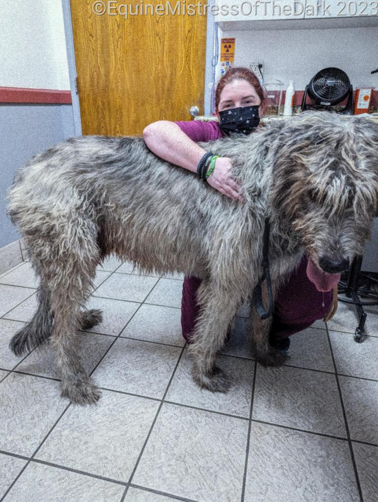 I roomed a lot of the patients today. They were playing favorites in the back, and training the other two on how to place catheders. I get it, its an important skill. But my skill development shouldn’t be hindered, ignored, or interfered with for it. But I did get too meet a good boy. A 8 year old, 160lbs Irish Wolf Hound named Laird (pronounced like ‘lord’).